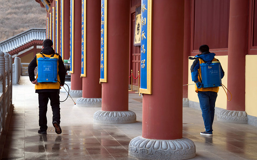 同时,兜率寺积极开展疫情防控宣传,严格执行卫生防疫措施,每日消毒消杀,将寺院内包含公用拜垫等细节在内的消毒工作都做实做细。