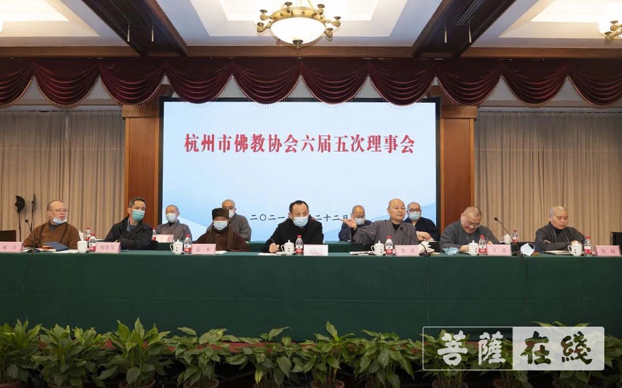 杭州市佛教协会六届五次理事会菩萨在线浙江讯 1月22日,杭州市佛教协会第六届五次理事会在灵隐寺召开,杭州市佛教协会会长光泉法师,名誉会长定本法师,常务副会长月真法师,副会长智圆法师、戒兴法师、戒清法师、念顺法师、演通法师、印旭法师、惟尘法师及全体理事参加会议。杭州市民宗局党组成员、二级巡视员周晓明,宗教处处长胡胜军等有关领导赴会指导。会议由杭州市佛协副会长戒兴法师主持。