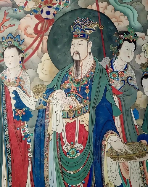 帝释天尊与娑婆世界的有情众生有着深厚的因缘,帝释天尊民间又俗称“玉皇大帝”,在佛教中是忉利天之主和护法神,他的主要职责是保护佛陀、佛法和出家人。其形象依《大日经疏》等说,头戴宝冠,身披璎珞,手持金刚杵,身骑六牙白象,住于须弥山,有诸天及众眷属围绕,镇护东方。