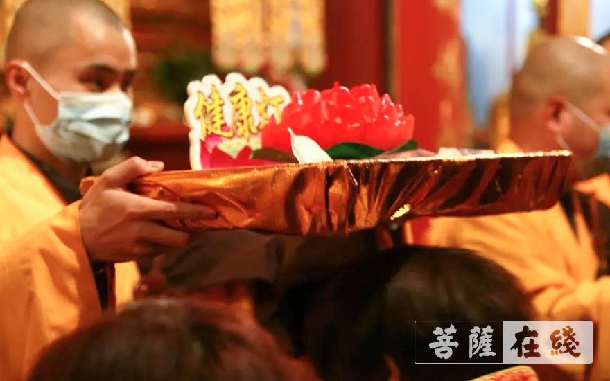 一声佛号,一次跪拜。常住法师虔心礼拜,依供灯仪轨诵经念咒,祈愿所求圆满。
