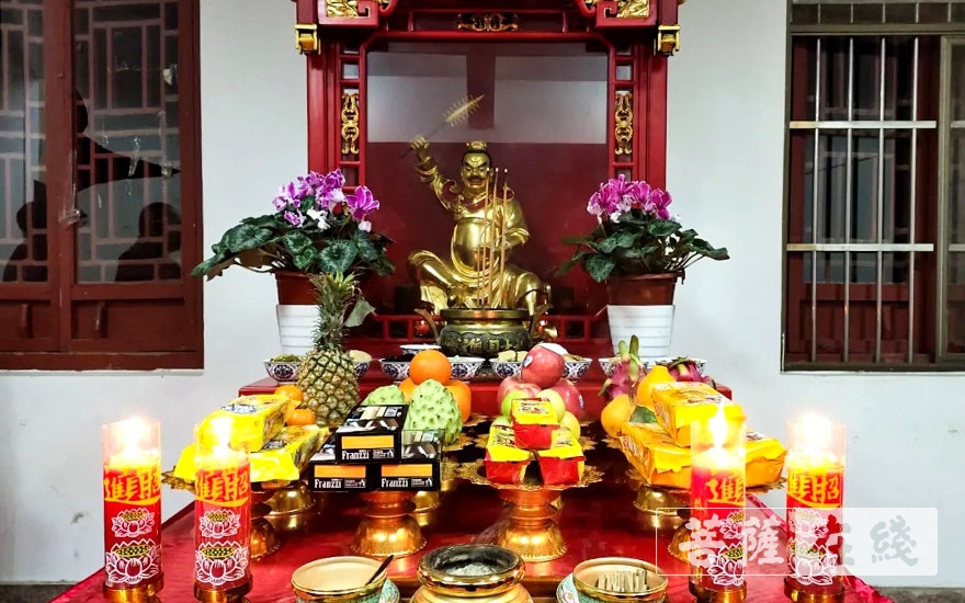 护法监斋圣德馨,梵呗颂唱贯古今。真心无我禅灯耀,法流永续泽万民。佛门有“三千诸佛皆出在厨中”之说,其中监斋菩萨即为监护僧众斋食之神祇,是寺庙里厨房中的开悟者,是掌管厨房一切事物的护法菩萨。