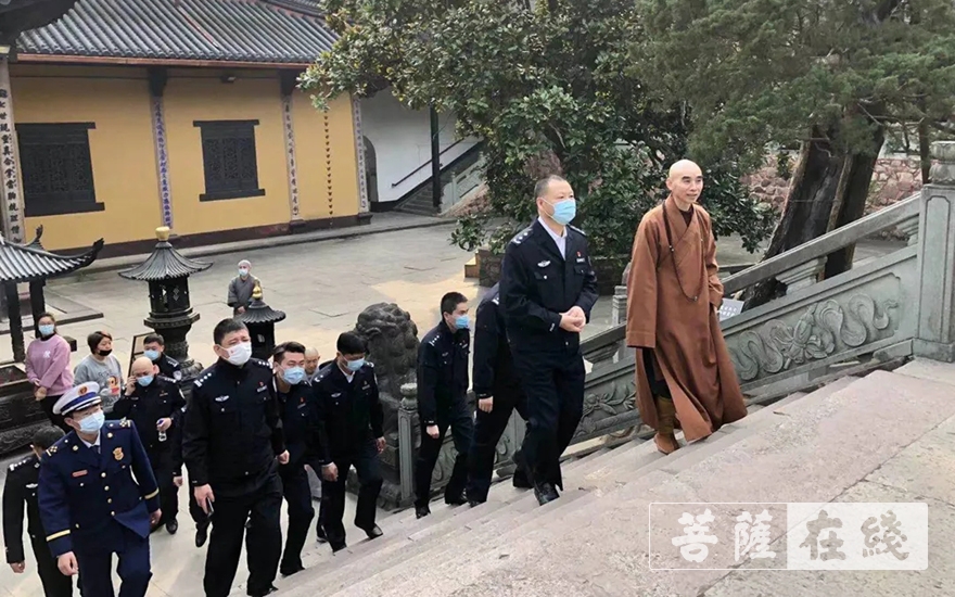 柴大科一行前往宁波天童禅寺视察菩萨在线浙江讯 2月7日,宁波市公安局副局长柴大科一行前往天童禅寺检查春节期间寺院开放的安全工作。