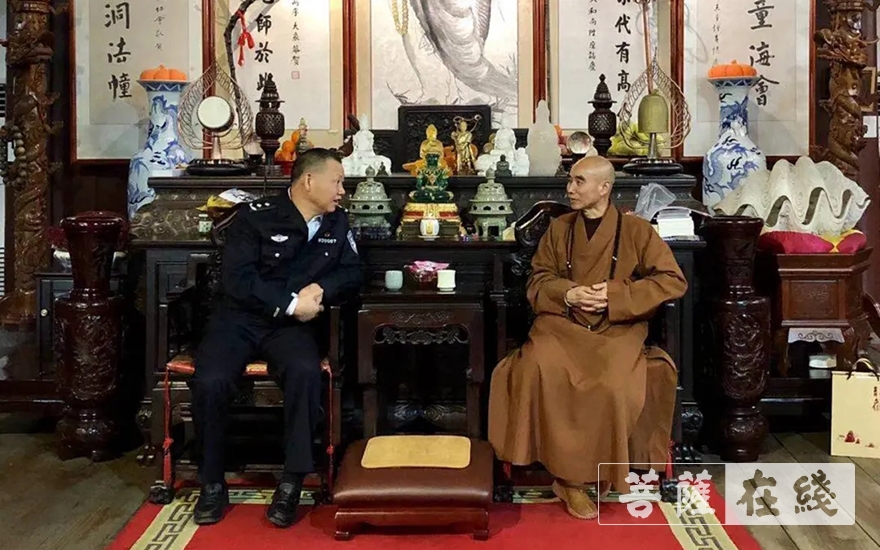 随后,双方在丈室进行了座谈,对春节期间寺院安全和消防工作方案、应急预案进行了沟通和部署。柴大科一行还检查了各殿堂、通道的照明等情况,确保各项安全措施的落实。