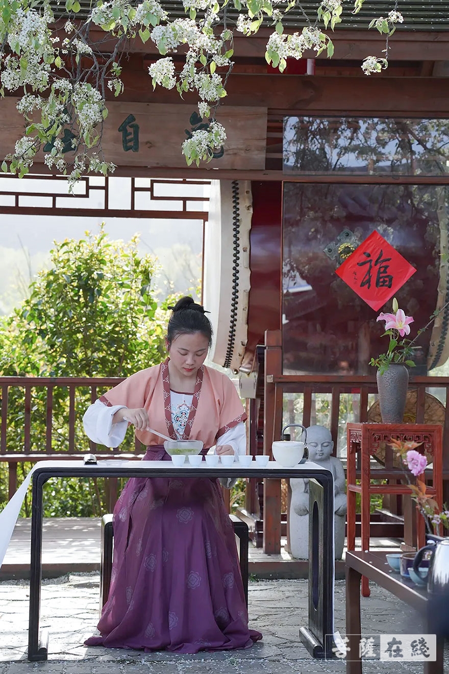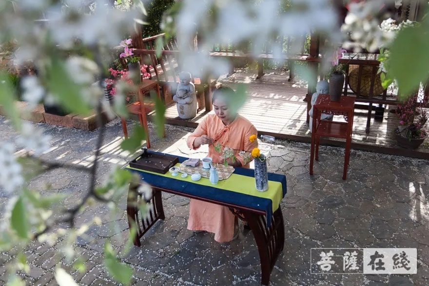 菩萨在线安徽讯 为了响应党和政府“四个自信”的号召,发挥佛教正能量,推动和弘扬中华优秀传统文化,增强社会大众的文化自信,3月28日下午15时,合肥大宝佛寺举行以“棠梨花开”为主题的梵乐·禅茶·诗歌雅集。来自十方的僧俗二众、梵乐茶道爱好者等近200余人走进寺院,在棠梨树下赏花品茗,以梵乐供养诸佛、以禅茶洗涤尘心,共谱雅集。