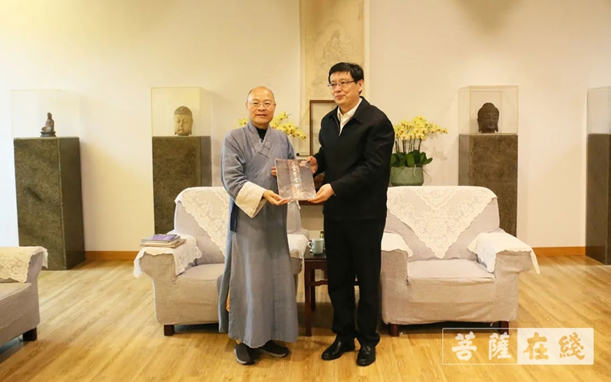 菩萨在线浙江讯 山东省济宁市委常委、统战部部长白山,统战部副部长、市民宗局局长王政等一行前往杭州佛学院调研。杭州佛学院院长光泉法师接待调研团,并介绍了杭州佛学院在新时代下,坚持佛教中国化方向的办学措施和经验,以及艺术教育的理念和方法。