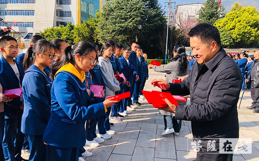 菩萨在线云南讯 3月8日,大理州民族中学举行“大理崇圣寺扶贫助学奖学金”颁奖仪式,为2020至2021学年秋季学期期末考试成绩优异、品学兼优、阳光向上的27名学生颁发奖学金。