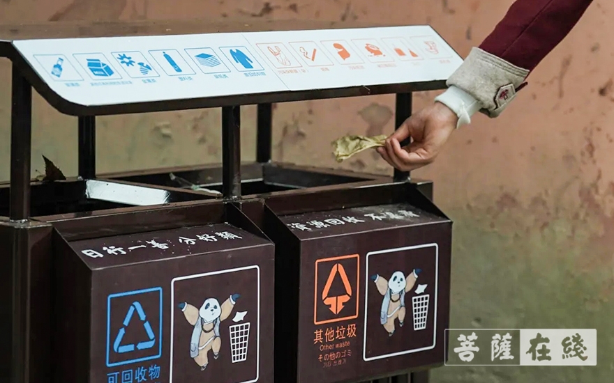 《成都市生活垃圾管理条例》已于3月1日正式实施。文殊院在2020年已全面更新分类垃圾箱,并设置了垃圾分类回收站等设施。