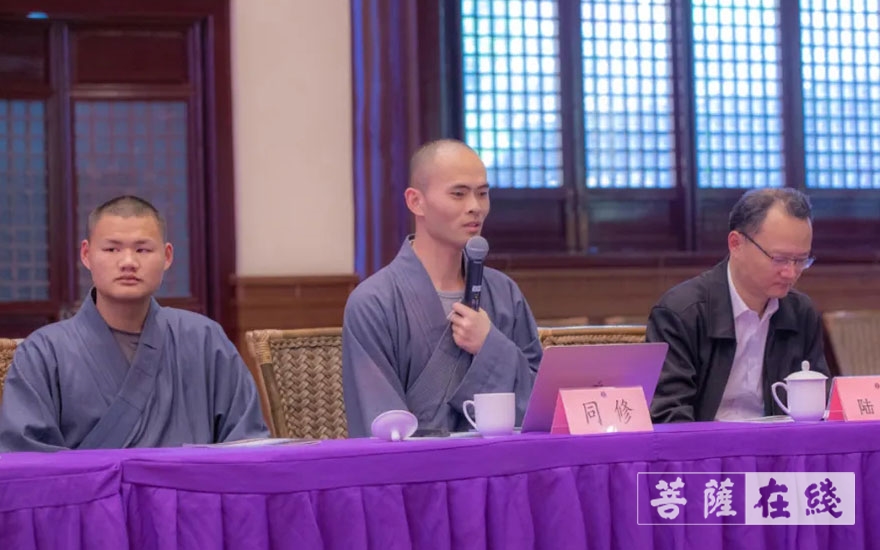 同修法师就寒山学院办学历史、组织架构、师资情况、教学情况及对外合作交流等情况做了简单介绍。