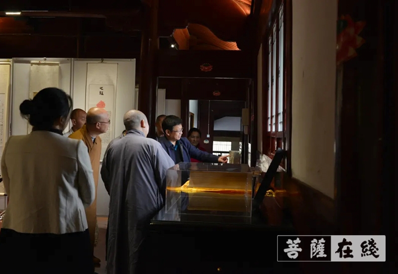 下午3时许,身振法师一行前往宁波市佛教协会驻地。宁波市佛教协会副会长、观宗讲寺住持印超法师,宁波市佛教协会秘书长周磊接待并陪同参观了四明延庆讲堂及“四明禅影”摄影展。