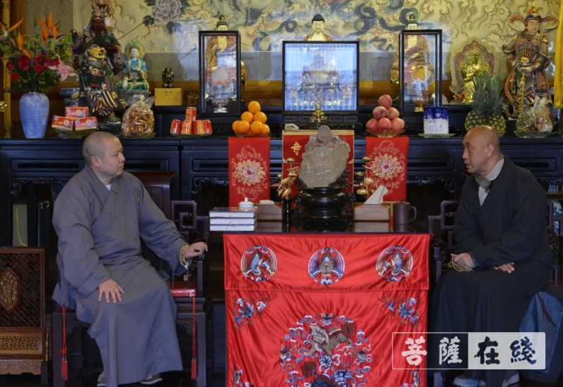 在大慈摩尼宝殿上香礼佛后, 身振法师对怡藏法师和两序大众的欢迎表示感谢,对资圣禅寺的建设表示赞叹。
