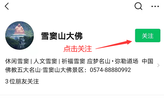 1.长按识别下面的二维码,选择“雪窦山大佛”公众号