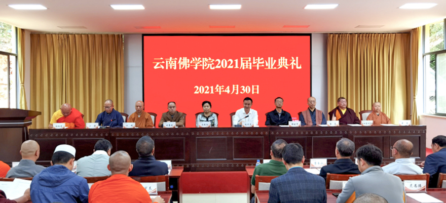 菩萨在线云南讯 4月30日,云南佛学院举行2021年毕业典礼。云南省民族宗教委党组成员、云南佛学院常务副院长赵成龙主持毕业典礼。