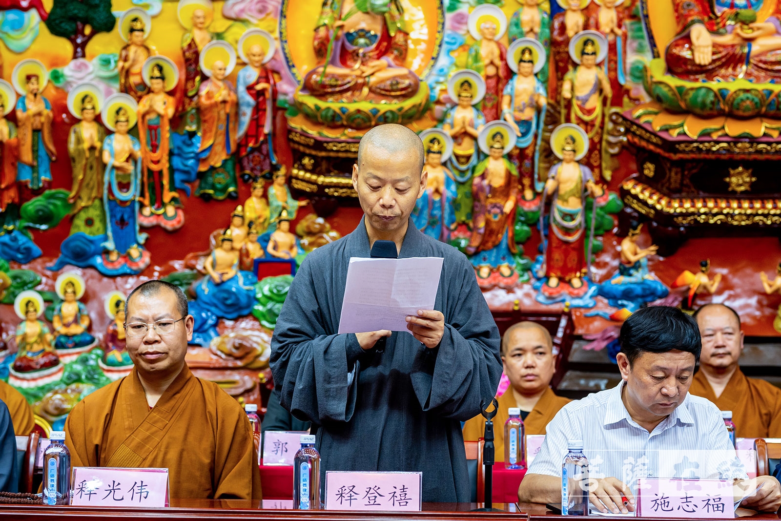赣州市佛教协会副会长登禧法师代表授课法师讲话:希望全体学员将本期培训班作为新的起点,把学到的知识运用到修行实践、工作生活中去,并确立终生学习理念,不忘初心,不负时代