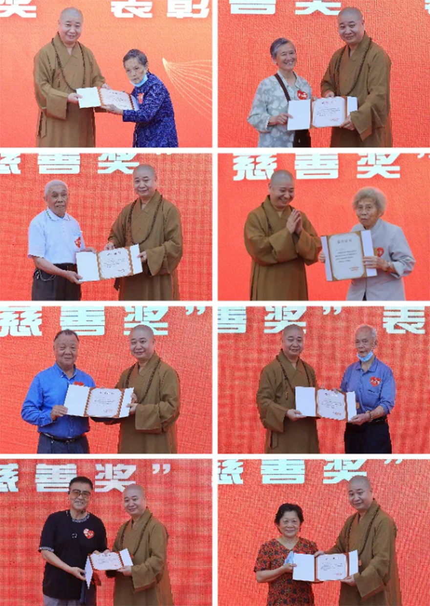 则悟法师为25位获奖者颁发“妙湛慈善奖”