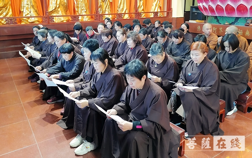 法会期间,法悟法师开示《梵网经》菩萨戒六重二十八轻戒戒相。法持法师讲解三皈五戒、日常规矩、如何搭海青及缦衣。惟正法师为全体戒子传授三皈五戒、审戒问遮,带领戒子忏摩。众戒子收摄身心、至诚忏悔,为求得上品戒体而勇猛精进。