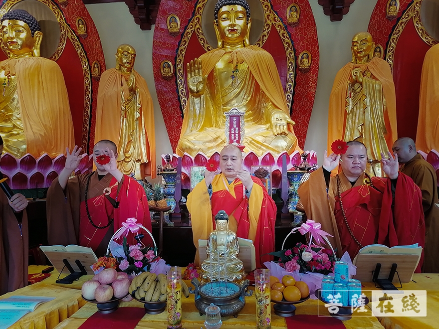 5月2日,三师拈香升座,登法王台。经过请戒开导、礼敬三宝、具虔请圣、受不坏信、悔三世罪、教示发愿、正授戒体、秉宣戒相、诵偈搭衣、结赞回向等仪轨,新戒圆满纳受清净菩萨戒,谢师出堂。
