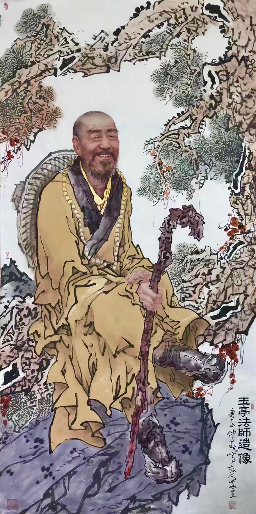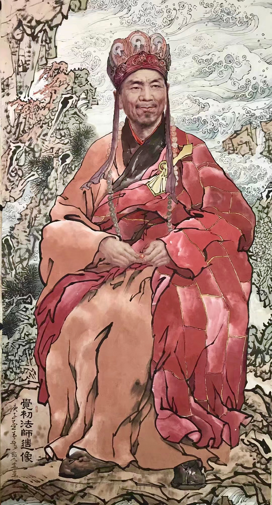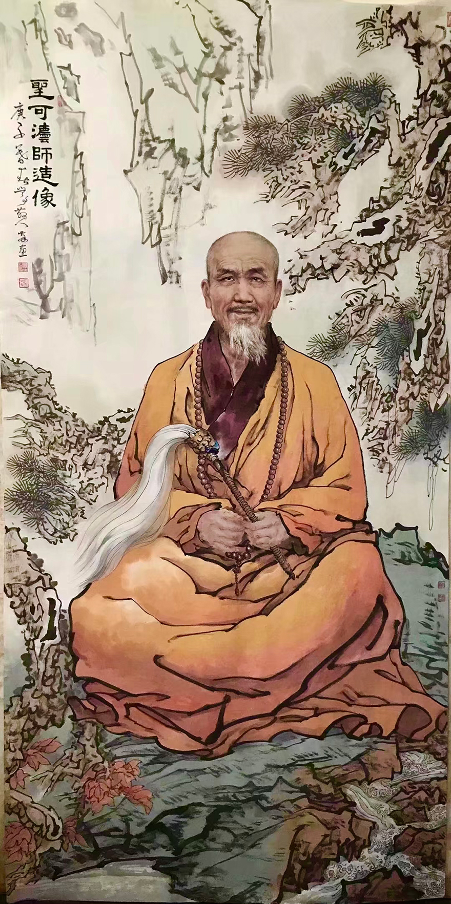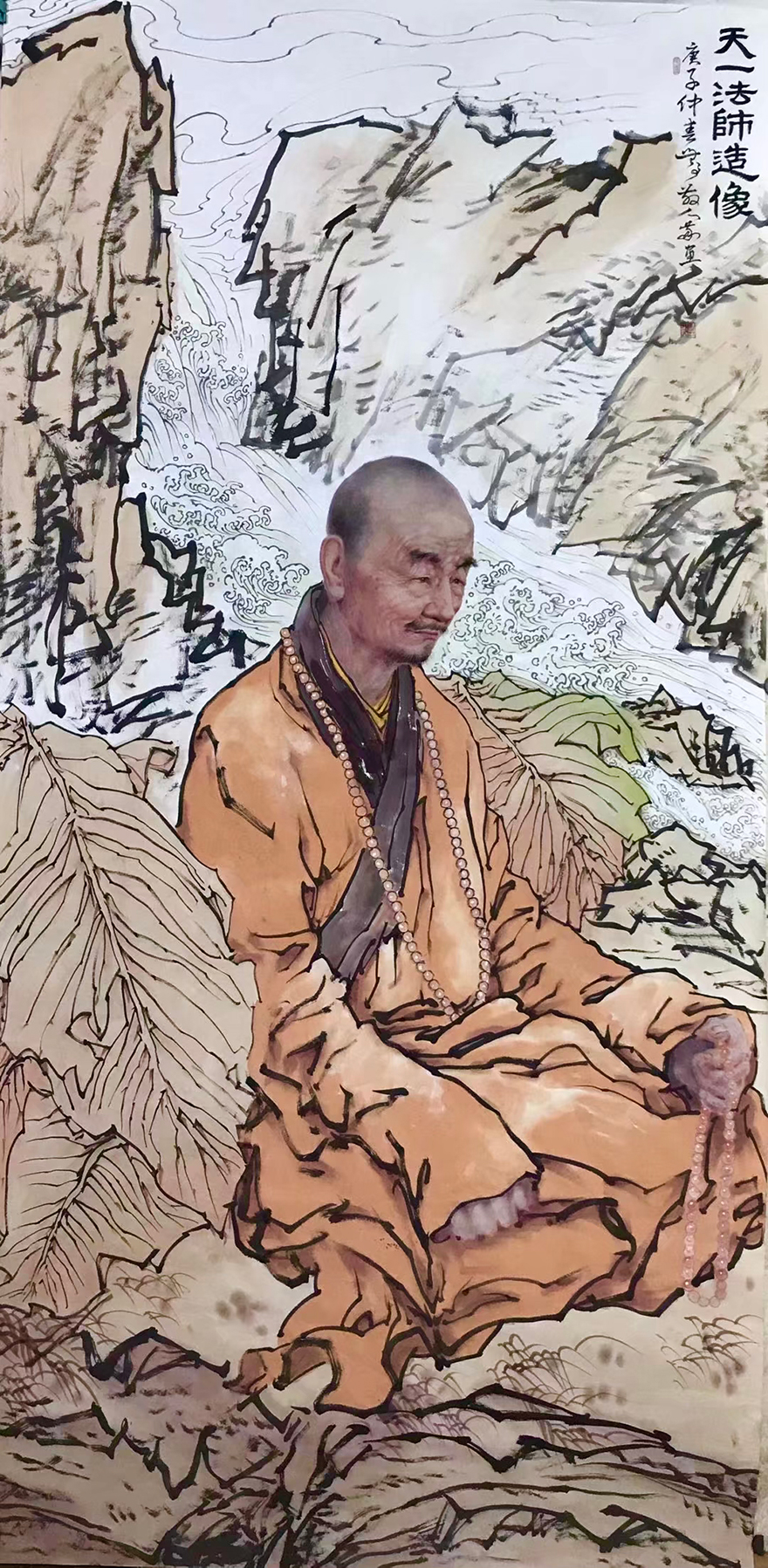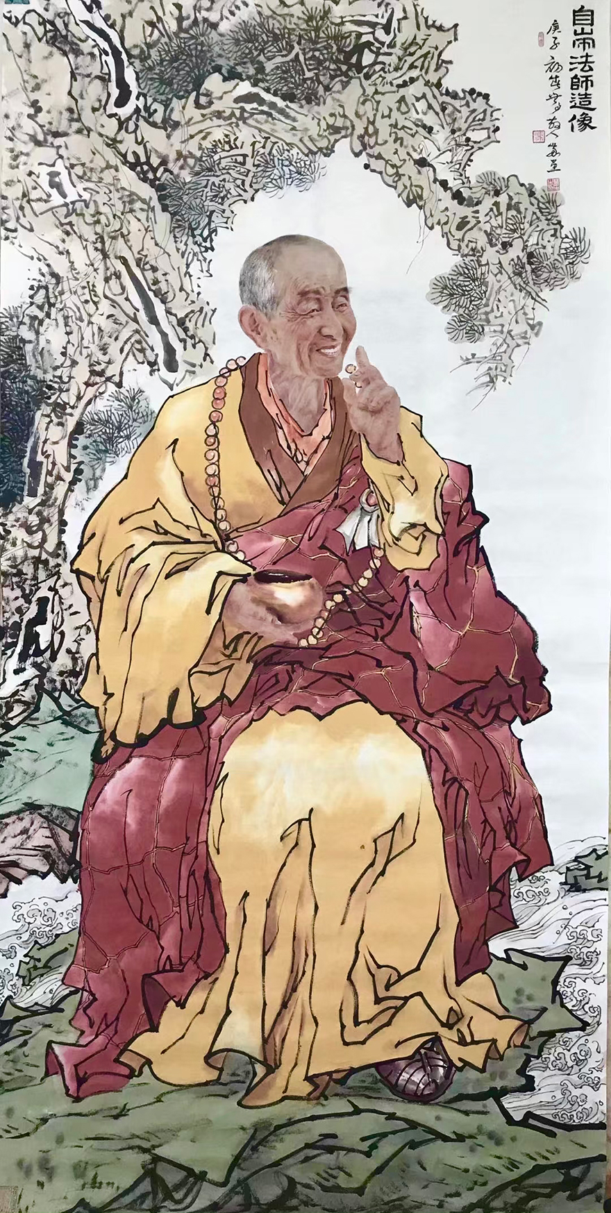 道坚法师表示,华岩寺自圣可开山,迄于今任华岩寺住持绵延三百余年。历代住持为一时之选,龙象辈出,代不乏人。他们或修建庙宇,或奉迎罗汉,或搬请藏经,或著书立说,或创办教学,或整理寺志,均竭力率全寺僧众为弘法利生作出重大贡献。通过西方绘画手法的面部特征作出的祖师形象,犹如祖师亲临。冯四海用深厚的笔墨功底,将半写半艺的绘画手法运用得活灵活现。(文图/重庆华岩寺)