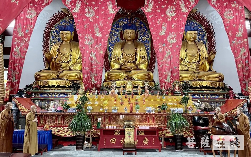 7月24日,太仓市同觉寺于大雄宝殿举行祈福超荐法会,祈愿暴雨洪灾早日息去,罹难同胞往生净域。