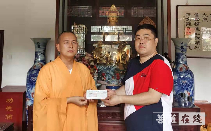 此外,为助力抗洪救灾,天津大悲禅院悟通法师受方丈智如法师委托,由河北区慈善协会副会长李研接收,指定向灾区捐赠善款20万元用于“防汛救灾驰援河南专项行动”。(文图/天津大悲禅院)