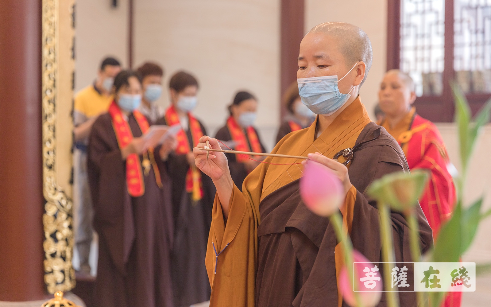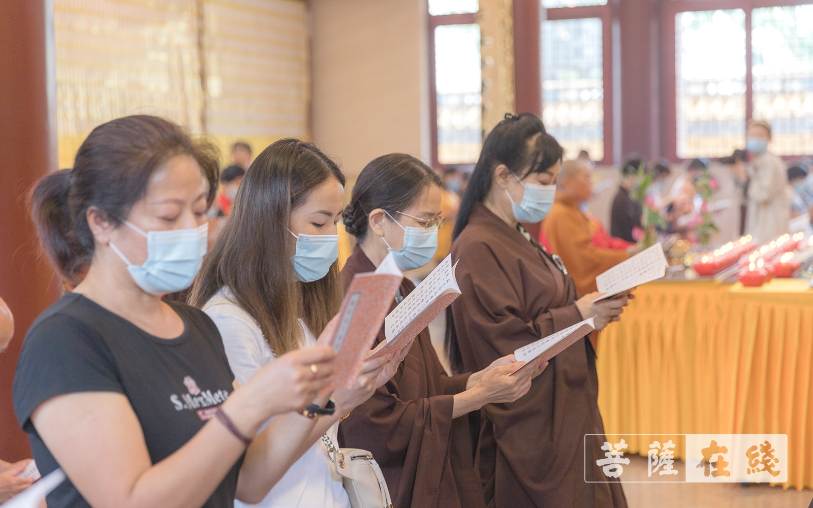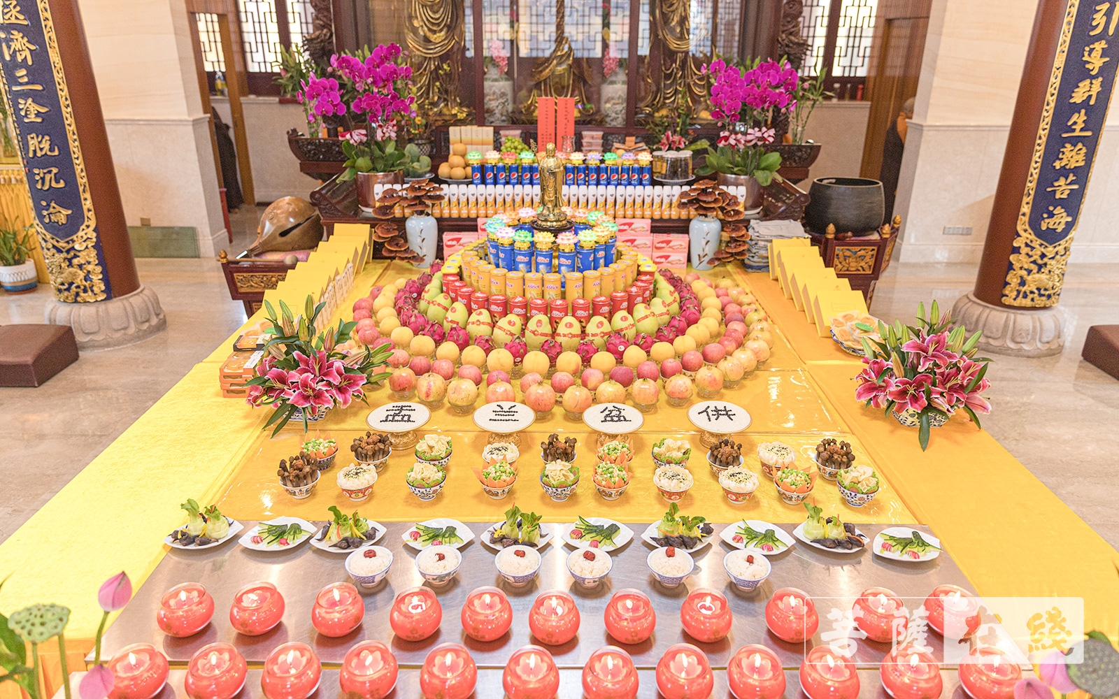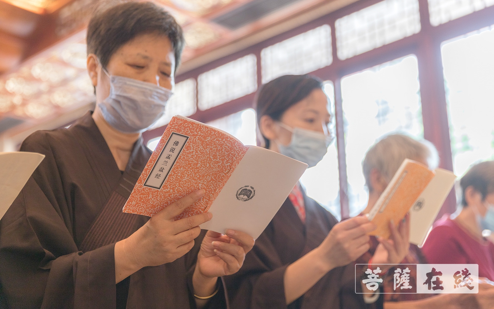 菩萨在线上海讯 8月22日(农历七月十五),上海龙音寺举行孝亲报恩盂兰盆法会。在龙音寺住持信弘法师的带领下,四众弟子恭诵《盂兰盆经》,并设盂兰盆供。