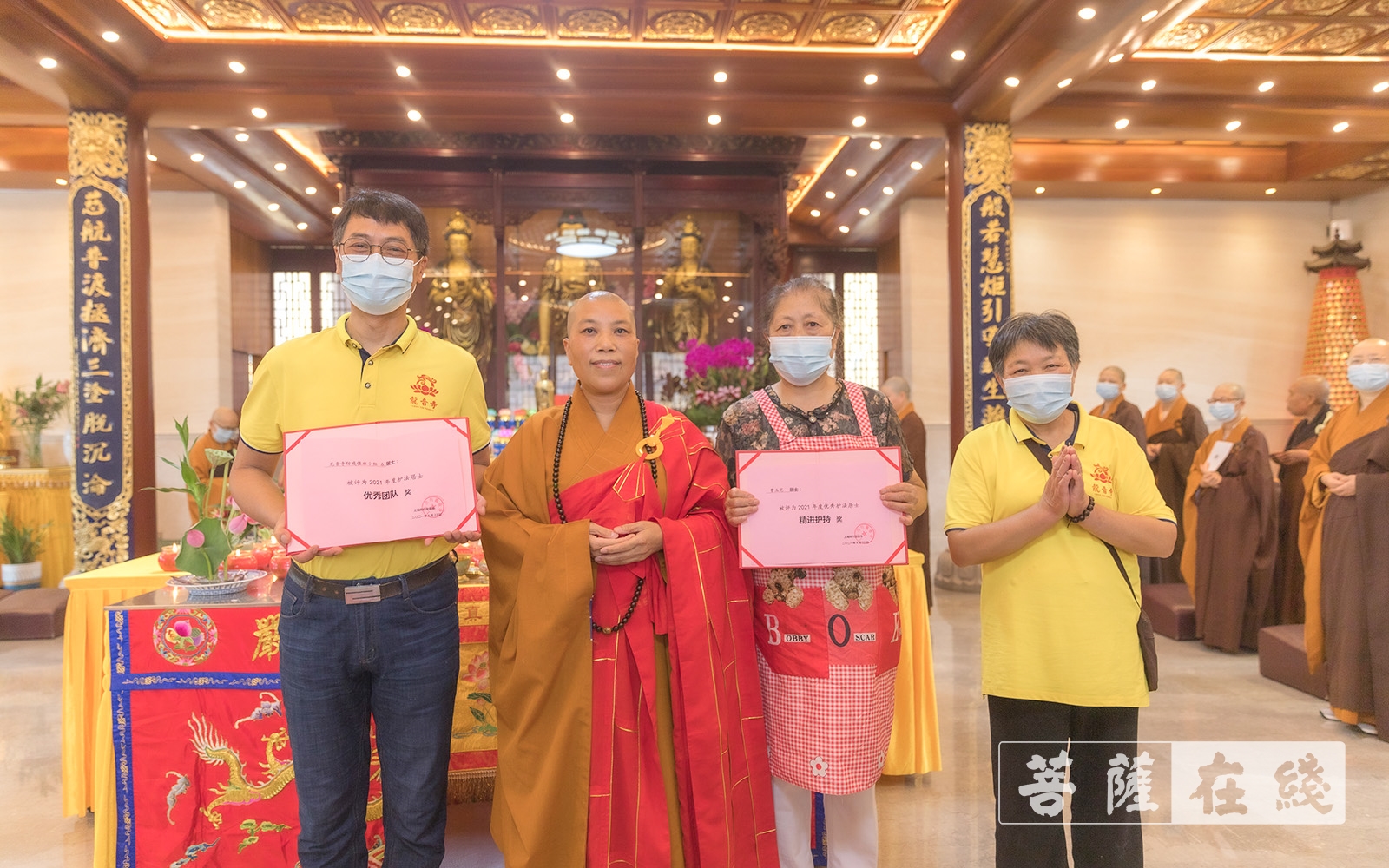 信弘法师为优秀义工颁奖(图片来源:菩萨在线 摄影:妙清)