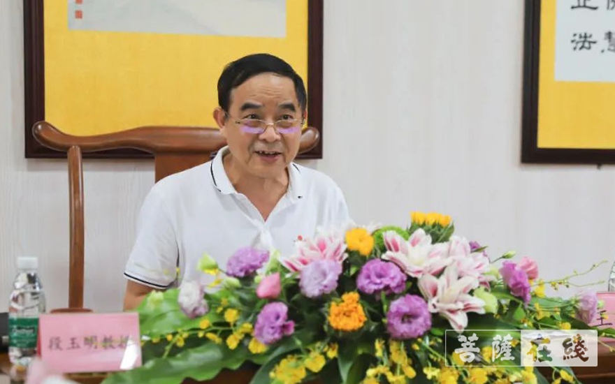 段玉明代表答辩委作总结。四川尼众佛学院院长如意法师作对全体师生所作出的努力表示感谢,认为此次论文答辩会,形式新颖、准备充分、论文质量高,学僧表现好。希望全体师生以此次论文答辩为契机,进一步提高教学质量,巩固教学成果,培育佛教人才,传承隆莲老法师的教学家风。