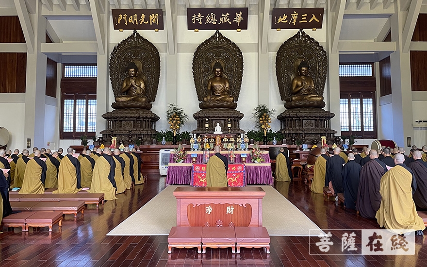 菩萨在线浙江讯 8月22日(农历七月十五),浙江佛学院(总部)秉依律典,谨遵佛制,举行安居解夏仪式。三月之中,在校师生坐禅、听法、华严共修等,摒弃外缘、摄静身心,精进修行,以戒为师,如法行持。