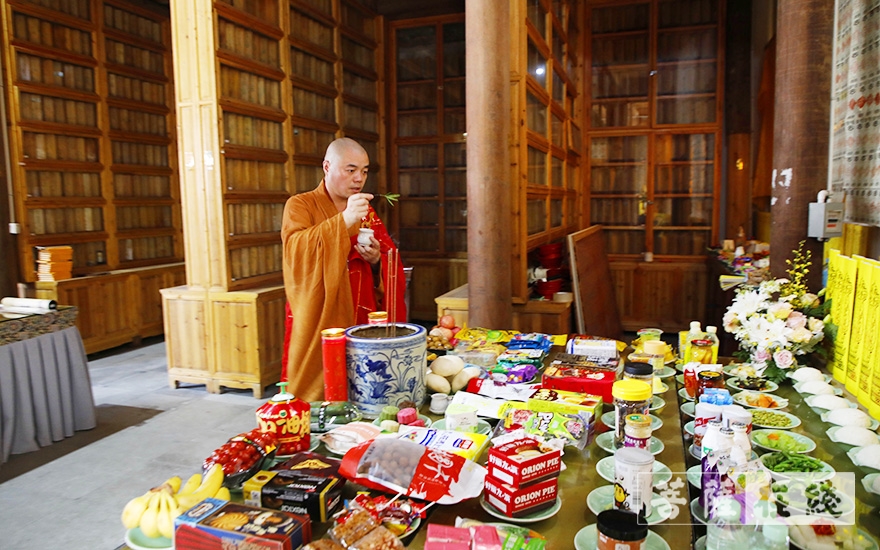 “盂兰”的意思为“倒悬”,指在恶道中危险的处境。“盂兰盆”即表达解脱父母的倒悬之苦的供养。后世佛子,效仿目犍连尊者,便在这一日作“盂兰盆供”,孝亲报恩。(文图/安吉灵峰讲寺)