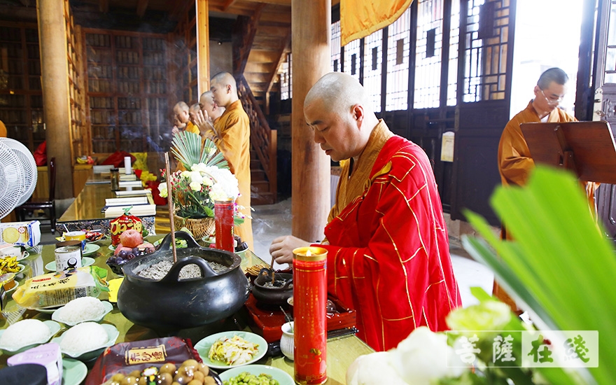 菩萨在线浙江讯 8月22日(农历七月十五),佛欢喜日,安吉北天目灵峰讲寺依照佛教仪规举行盂兰盆法会,供佛斋僧,超荐众生累世宗亲,以此功德回向十方法界一切有情,并祈世界和平,风调雨顺。