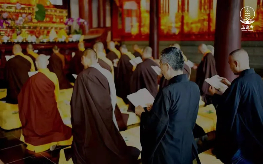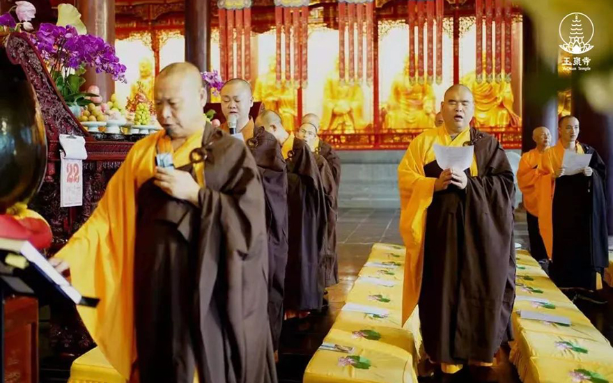 菩萨在线湖北讯 农历七月十五,安居解夏日,盂兰盆节,又称佛欢喜日、僧自恣日。湖北当阳玉泉寺依律解夏自恣,同时举行盂兰盆会及瑜伽焰口法会,虔心供养三宝。