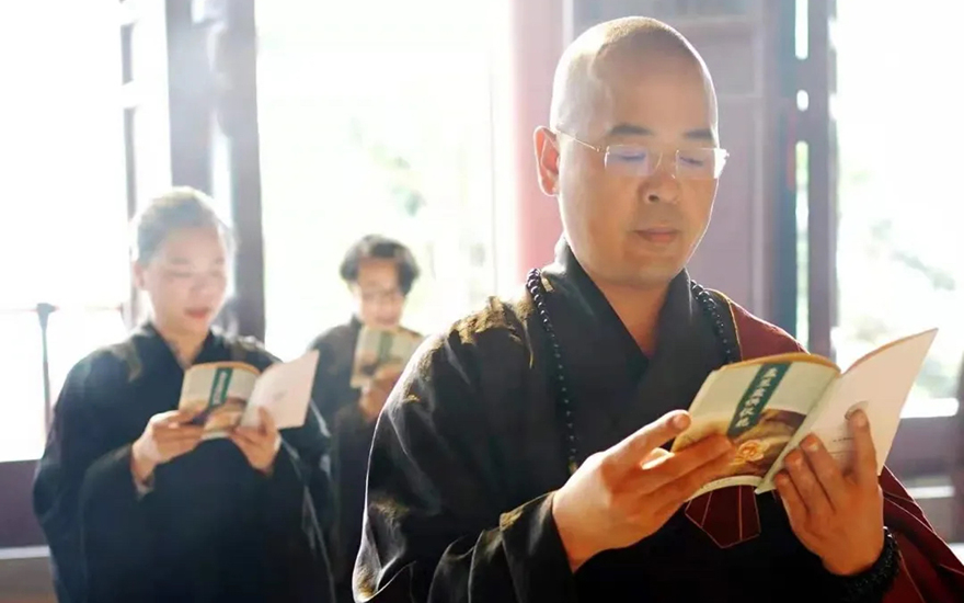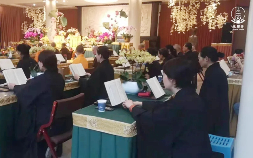 上午9时,道伟法师主法盂兰盆会,法会依仪轨举行。大众在法师们的引领下,长跪诵《盂兰盆经》。