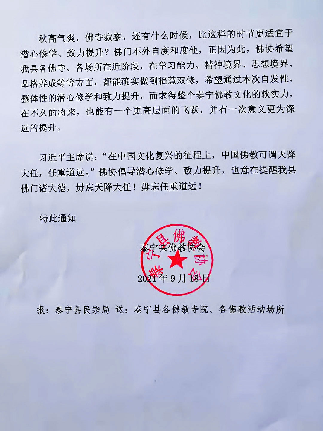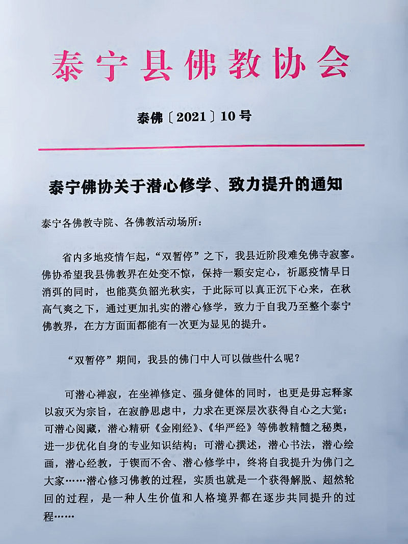 福建省泰宁县佛教协会倡导疫期潜心修学致力提升