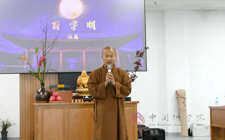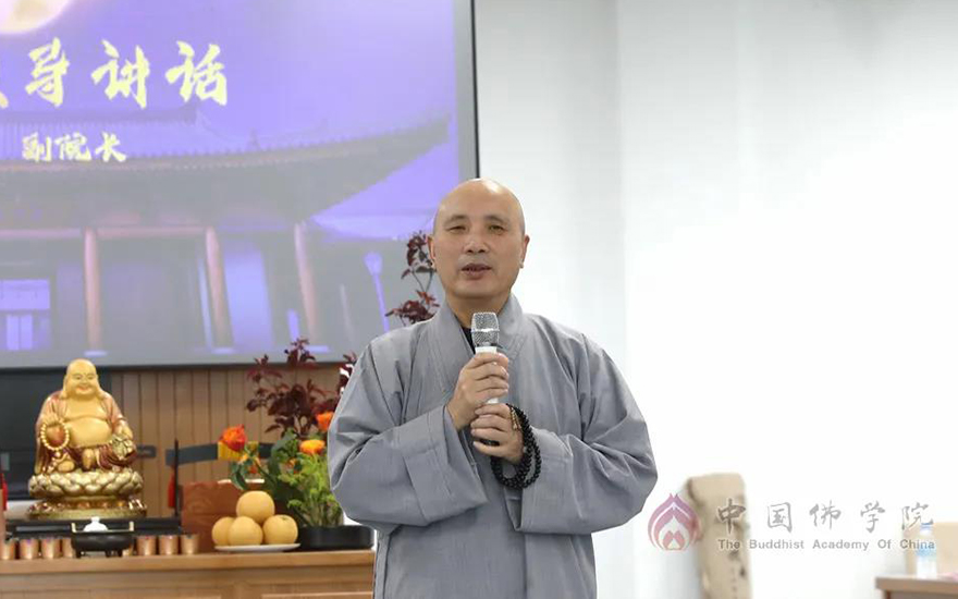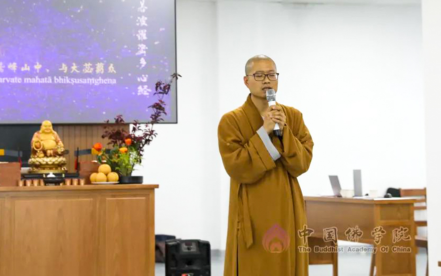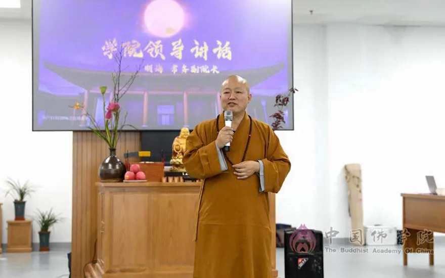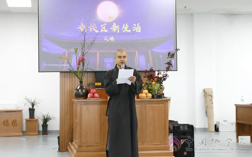 中国佛学院副院长向学法师带领全院师生一起回顾了新校区建设的艰难历程,叮嘱同学们把握时光,珍惜来之不易的学修条件