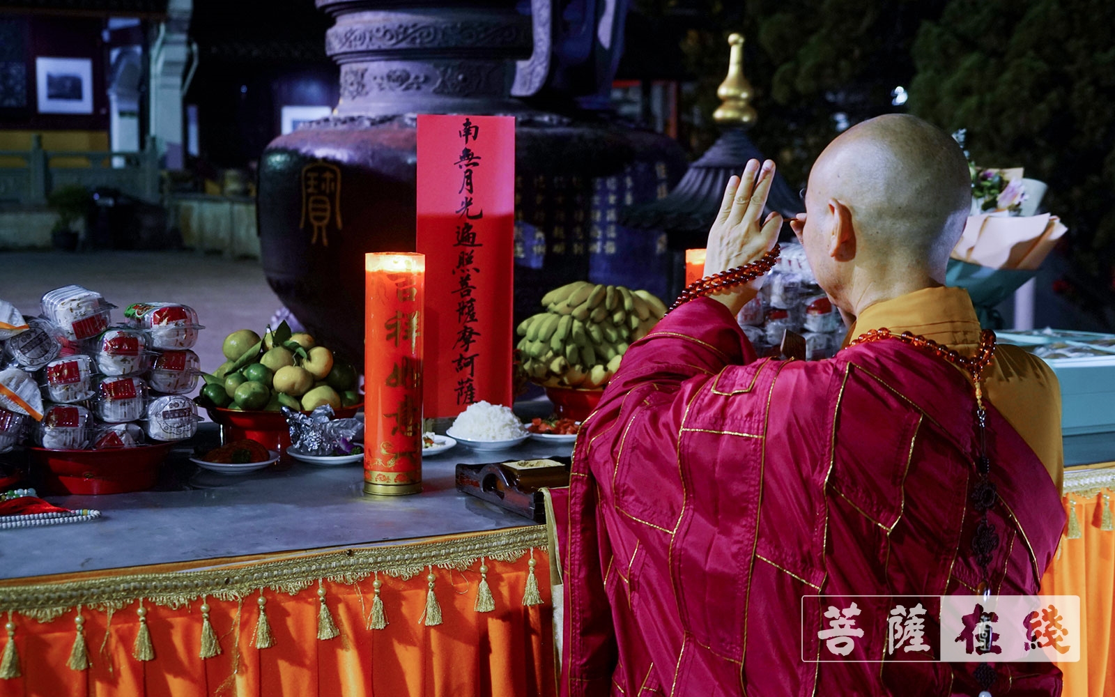 菩萨在线浙江讯 9月21日,时值农历八月十五,宁波天童禅寺常住法师及护法檀越齐聚佛殿前,敬设百味妙供,举行中秋拜月祈福活动。