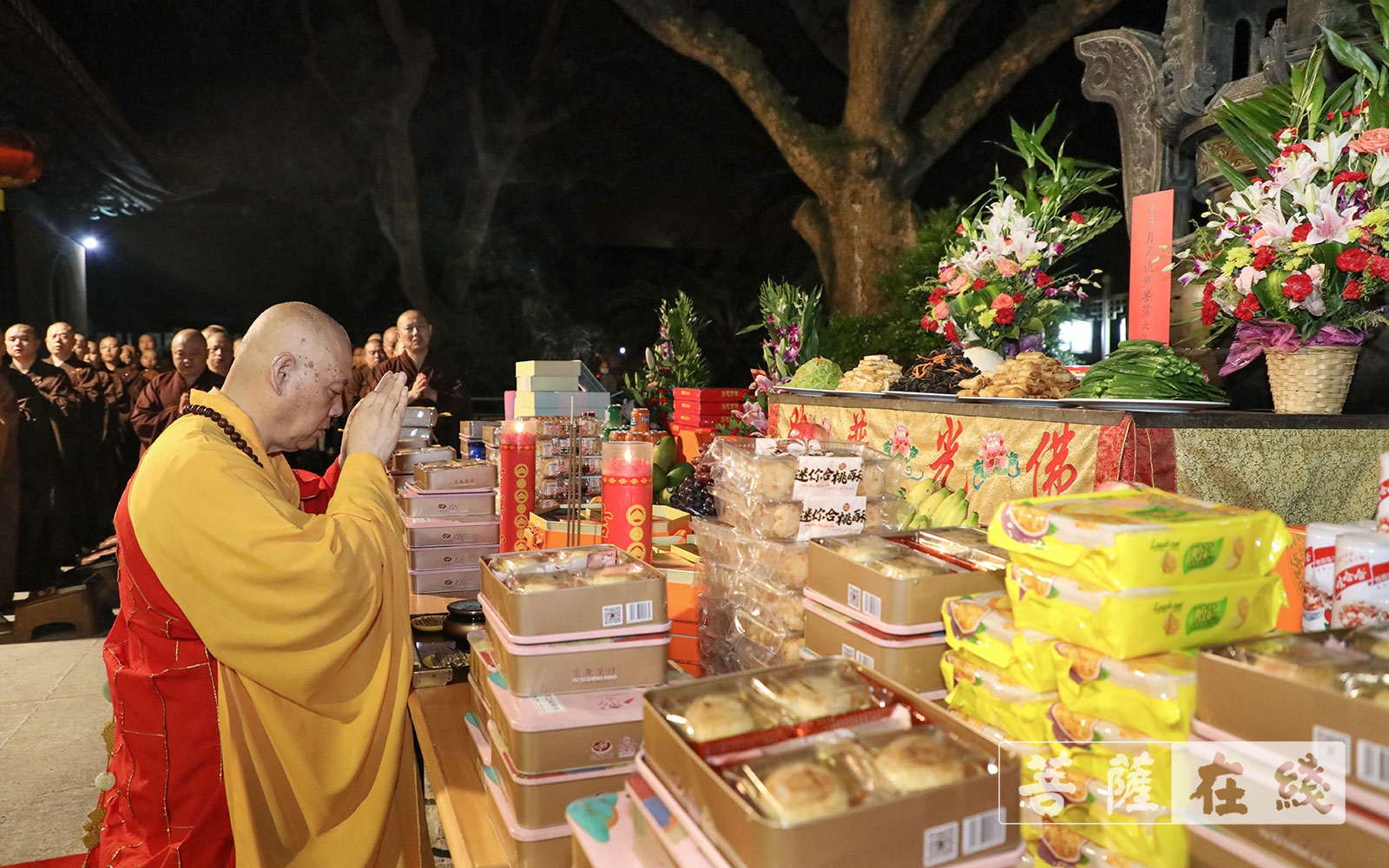 菩萨在线浙江讯 9月21日(辛丑年八月十五),恭逢月光菩萨圣诞,普陀山普济禅寺于圆通宝殿前举行礼拜月光菩萨祈福法会。中国佛教协会副会长、普陀山佛教协会会长、中国佛学院普陀山学院院长、观音法界管理中心主任、普济禅寺方丈道慈大和尚拈香主法。普陀山佛教协会副会长兼秘书长智宗法师,普陀山佛教协会会本部与普济禅寺全体法师,及部分护法居士在充分做好疫情防控措施的前提下共沐佛恩、欢度佳节。