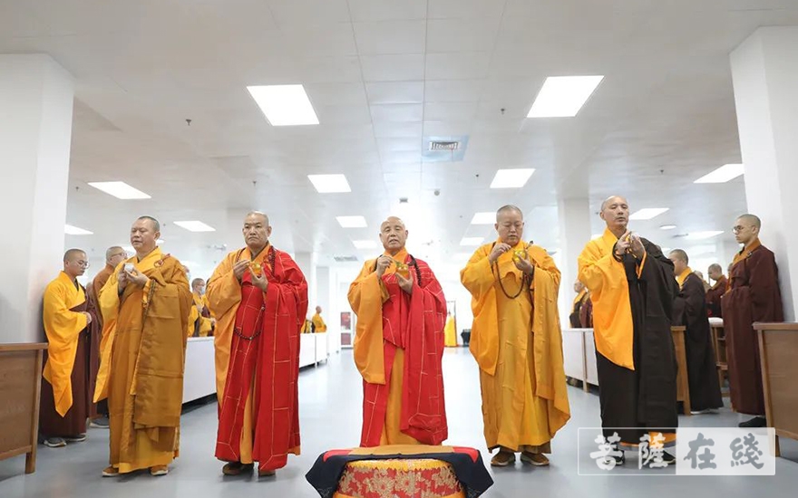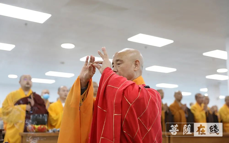 演觉法师、明海法师、常藏法师、向学法师、清远法师持净水拈杨枝