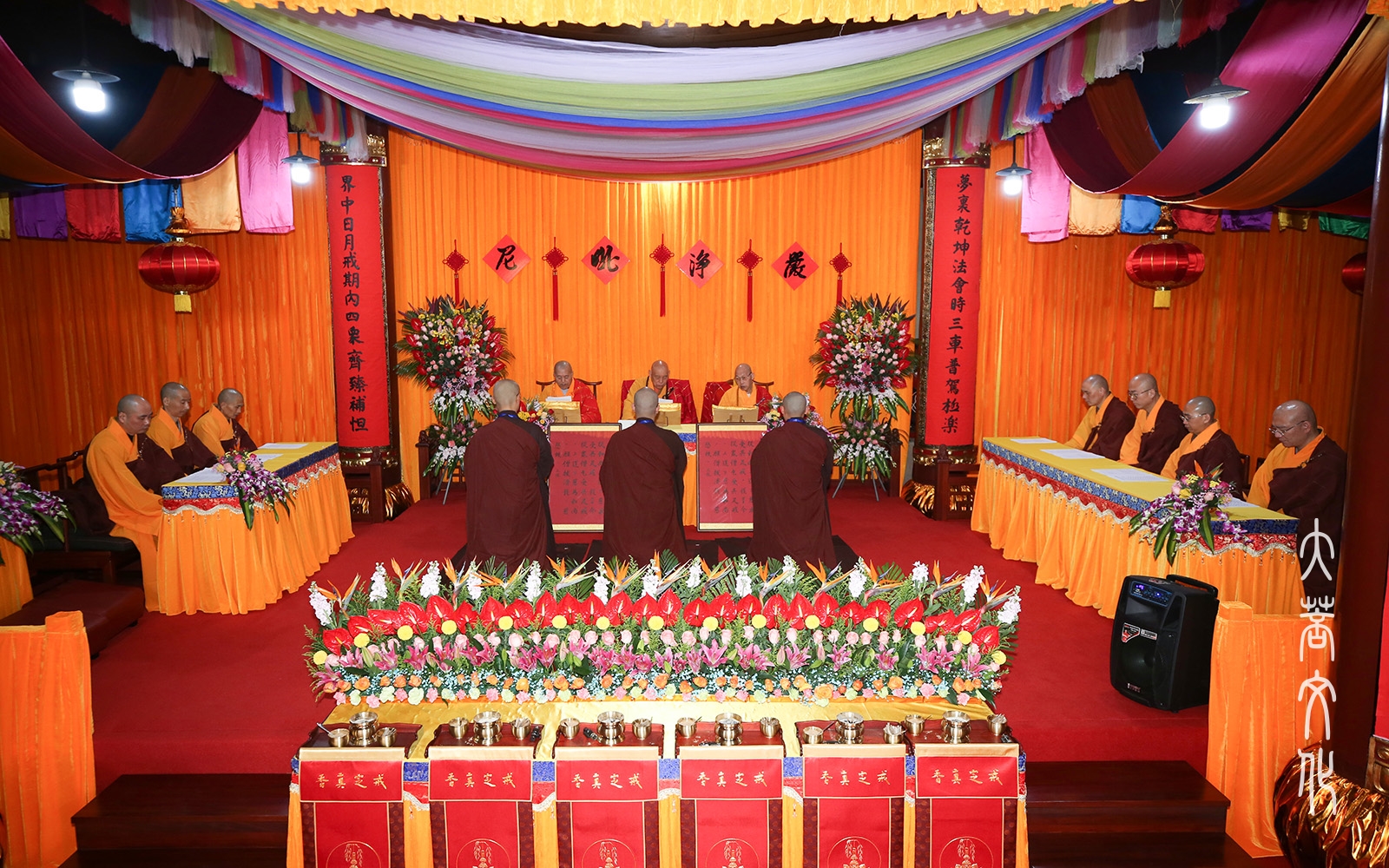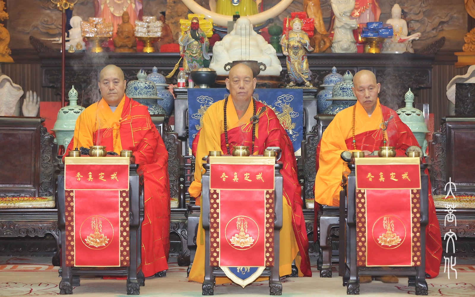 此次正授比丘戒恭请道慈律师为得戒和尚,净妙律师为羯磨阿阇黎、维国律师为教授阿阇黎,为诸位乞戒沙弥传授比丘戒。恭请定明律师、宏海律师、式净律师、礼贤律师、照慧律师、月灯律师、义住律师为尊证阿阇黎,为众乞戒沙弥证明受戒。