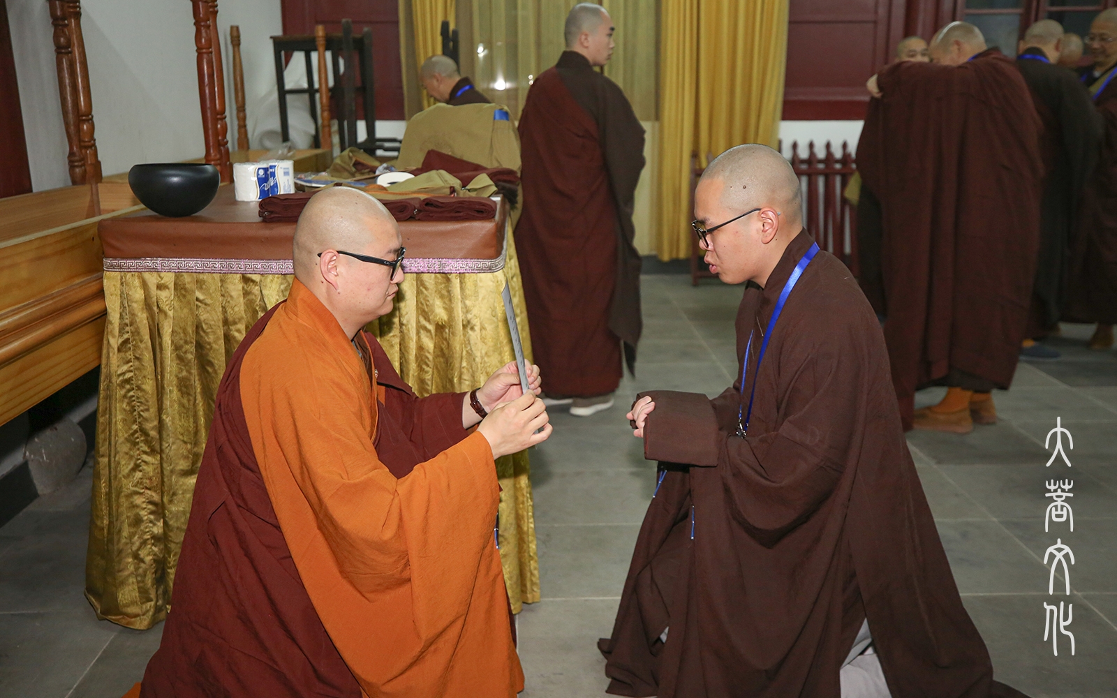依照戒律规定,沙弥只有通过正受比丘戒后才称之为比丘,这是沙弥成为比丘的神圣仪式。二坛正授比丘戒,依《南山传戒仪轨》如法进行,主要由集众请师、登坛请圣、诵遗教经、拣众清净、正受戒体、嘱累受持、诵遗教经、回向等内容构成。众乞戒沙弥在受比丘戒前,通过沙弥学处、学习梵呗、师资相摄、露罪忏悔、乞戒礼佛祈祷、教乞戒、习乞戒、荐度宗亲、安居策修、开导法义、请戒开导、二坛唱念、忏摩、演习登坛、审罪忏悔、礼通宵等法仪的学习,已初具比丘威仪。(文图/普陀山佛教网 视频/果木)