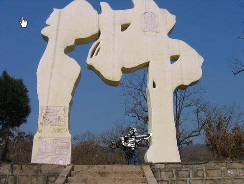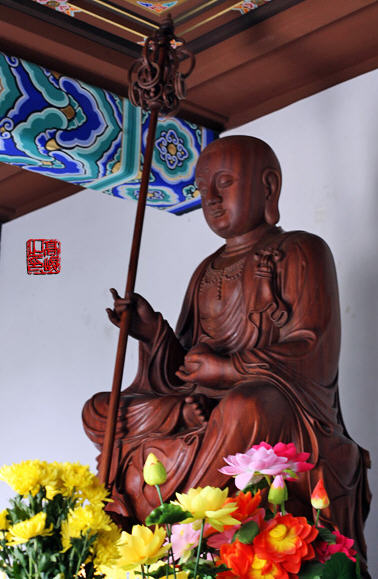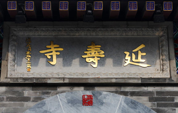 这是著名书法家贾松阳先生所书的汉白玉“佛”字。它外形是字,实则像门,寓意“不二法门”。每位拜佛求仙的善男信女,必拾级而上,循入“佛门”,才会达到延寿寺的正殿,祈求佛祖保佑并得到心灵的净化。