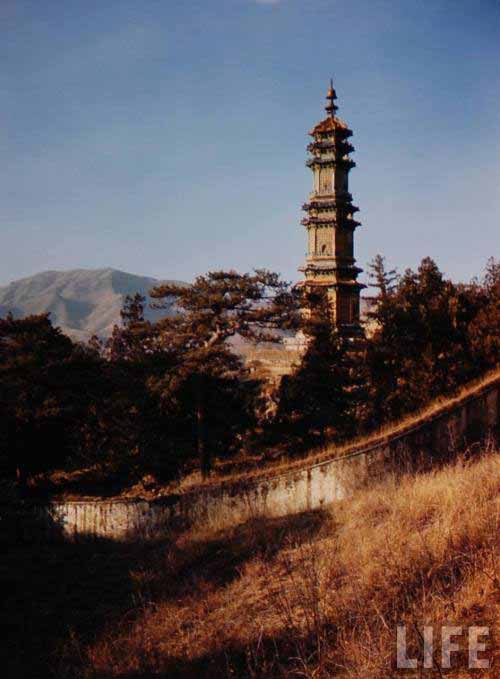 圣缘寺多宝琉璃塔:圣缘寺在玉泉山的西麓,是一座规模较小的佛寺,多宝塔矗立在寺内的一个小山坡上。这是一座楼阁式与密檐式相结合的琉璃砖塔,塔身呈不等边的八角形,东南西北四个正面宽,东南、西南、西北、东北四个斜面稍窄一些。上下分为3组,共七级。塔身通高16米,整座塔身使用黄绿青蓝紫五色琉璃镶嵌而成。其在造型、高度、颜色上,与颐和园的多宝琉璃塔基本一样。简直可以称得上是一对双胞胎。两座塔建成的时间也比较相近。极有可能是使用得是同一图样。