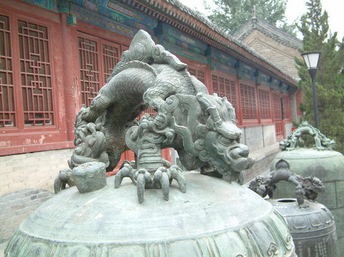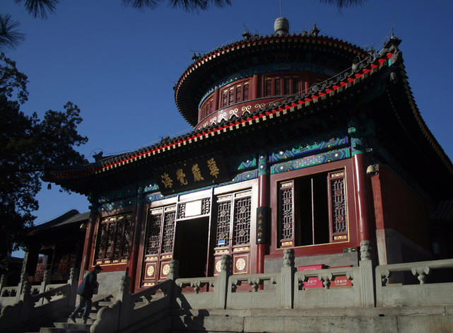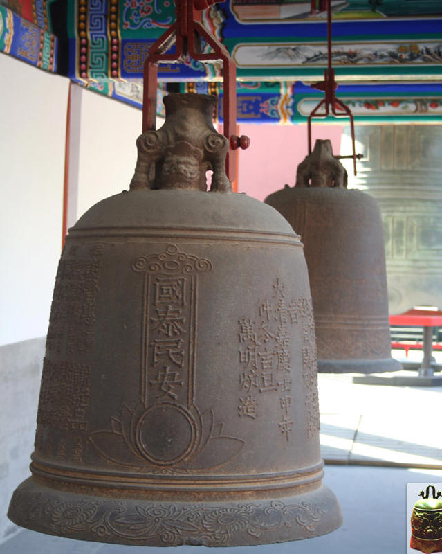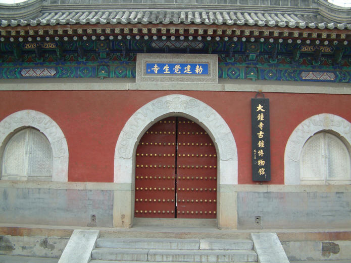 大钟寺位于西郊北三环路。原名觉生寺,因寺内有500多年前的永乐大钟而闻名与世,俗你大钟寺。该寺建于清雍正十一年(1733)。山门上青石匾额四周刻有9条穿云飞龙,正中为雍正御笔"敕建觉生寺"是建庙时的原物。寺坐北朝南依次为影壁(已毁),山门、钟鼓楼、天王殿、大雄宝殿、观音殿和藏经楼、大钟楼及东西藏经楼、配殿等。