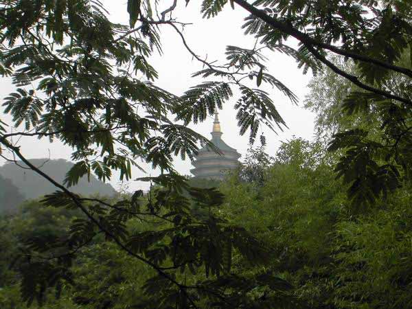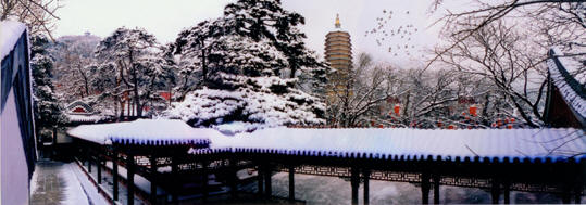 水心亭院的东侧,有一处铁栏杆围着的塔基,这就是发现佛牙舍利的画像千佛塔(招仙塔)遗迹。塔基东有大悲殿,殿内供奉千手千眼观音。东殿房是卧游轩,供接待远道前来拜佛的嘉宾香客使用,西侧配房为僧人居住。