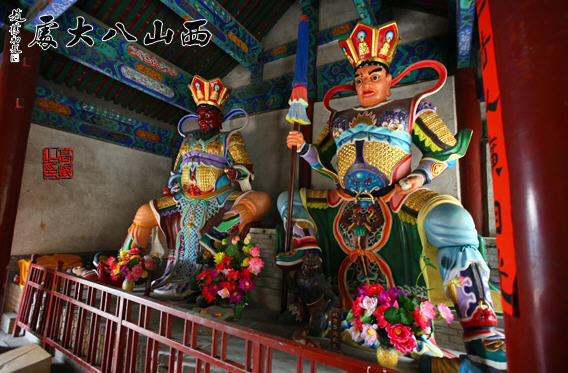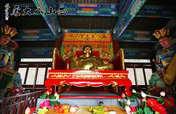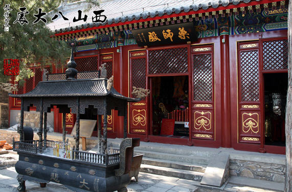 大悲寺有三进院落,山门镶嵌有康熙印章的“敕建大悲寺”匾额。第一进正殿为大雄宝殿。殿内供奉三世佛,两厢分别列有十八罗汉塑像。这组十八罗汉塑于元代大德二年(一二九八年),形像生动,欲起、静坐、微笑、沉思,神态逼真。传为元代雕塑家刘元作品,全用檀香末和香沙塑成,香气袭人。刘元,元代宝坻人,字康元。元代中期,凡上都(今内蒙多伦市)与大都(今北京)名刹所塑的泥质或铸铜像均出自他手,元代皇帝对他的雕塑大为赞赏,两次赐宫女为妾,官至昭文馆大学士、正奉大夫秘书卿,由此可见他在元代雕塑家中地位是非常高的。如今虽经过七百多年的岁月,当游人步入殿堂,檀香芳香依旧沁人心脾。八大处的佛像在十年动乱中遭严重毁坏,十八罗汉雕塑是幸存的艺术珍品。
