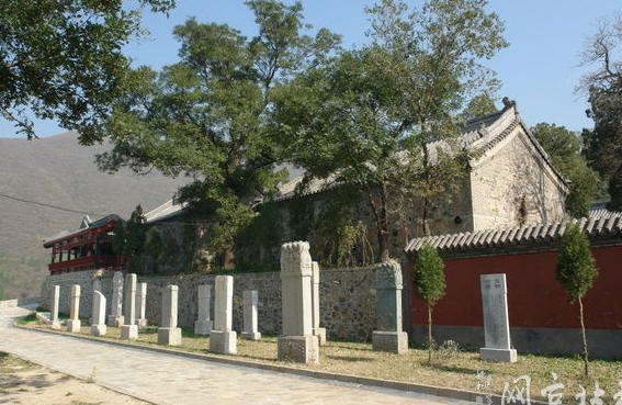 寺内外石刻众多,以冯玉祥将军留下的石刻最为引人注目。有“勤俭为宝”、“真吃苦”、“耕读”、“淡泊”等楷书大字,前7字3尺见方,后4字2尺见方,镌刻在山门外东山坡和寺后北山坡上。在“耕读”、“淡泊”附近,尚有从《周易》摘录的“八卦谦”200余字,每字半尺见方。