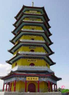 大菩提寺位于黑龙江集贤县,大菩提寺历时3年筹建了药师如来万佛宝塔,该塔高49米,铜制塔刹重5吨,高8米,塔内供奉11080尊药师圣像,被称为"东北第一塔"。辽宁省佛教协会会长照元法师应邀为万佛塔开光主法。