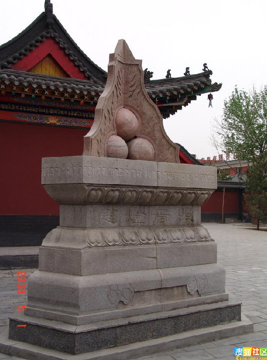 在金刚座舍利宝塔背面(即北面)的山墙上嵌有三幅雕刻,以“蒙古天文图石刻”最为珍贵,是研究天文学史的重要资料。