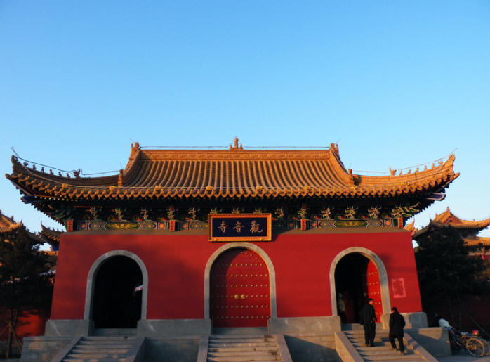 观音寺,座落在旧城西南玉泉区泉源巷,俗称观音庙,属长和廊街道办事处管辖范围之内,南临鄂尔多斯路,占地1180平方米。寺庙始建于清朝嘉庆年间(1796-1820年),据今已有200多年历史,是玉泉区境内唯一保存完整的沙门教庙宇。沙门教是同喇嘛教风格迥异的佛教教派,尚青衣、戒荤吃素。