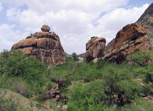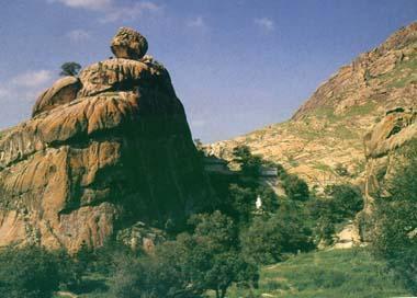 钦达慕尼峰的东北有两个突起的岩石,名曰探哨岩,象是守卫钦达慕尼峰的两个哨兵,来这里朝圣的人,须绕它三遭。