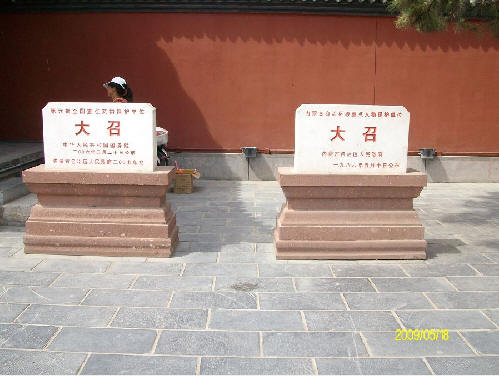 大召寺的宗教文物众多,其中银佛、龙雕、壁画堪称“大召三绝”。清代康熙年间,主佛殿加供了皇帝万发金牌,并将殿顶改换成琉璃瓦,大召遂成“帝庙”。大召是明清时期蒙古地区最早建立的喇嘛教寺庙,是呼市内最大的黄教寺庙,也是蒙古少有的不设活佛的寺庙。因康熙皇帝曾在此住过几日,为了表示对皇帝的尊敬,僧侣们取消了活佛的转世规定。