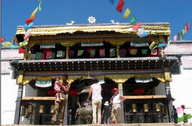 根佩庙四周有八个白塔和群山相映,远眺白云蓝天,山头塔形、小溪流水、别有一片风光。这里的建筑规模宏伟、庙宇壮观,影响非常之大。